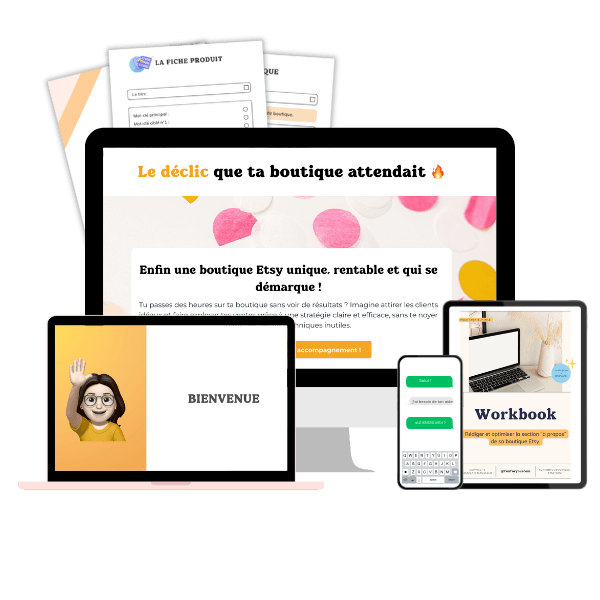 Mais si tu es motivée à transformer ta boutique Etsy en un vrai business rentable et durable... Alors cet accompagnement est exactement ce qu’il te faut.